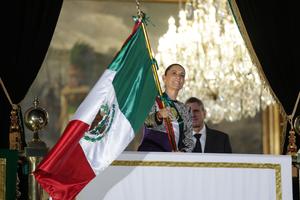 (250916) -- CIUDAD DE MEXICO, 16 septiembre, 2025 (Xinhua) -- Imagen del 15 de septiembre de 2025 de la presidenta...