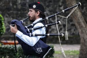 (250820) -- CIUDAD DE MEXICO, 20 agosto, 2025 (Xinhua) -- Un miembro de la Banda de Gaitas del Batallón de...