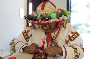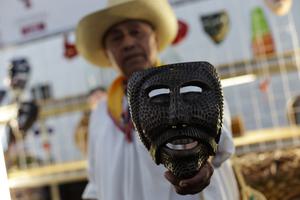 (250612) -- CIUDAD DE MEXICO, 12 junio, 2025 (Xinhua) -- Un artesano muestra una máscara durante el evento "ORIGINAL: Encuentro...