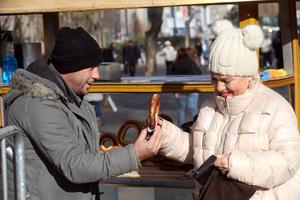 (260105) -- ANKARA, 5 enero, 2026 (Xinhua) -- Una clienta (d) compra simit, un pan similar a un bagel cubierto...