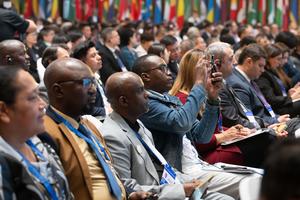 (250906) -- KUNMING, 6 septiembre, 2025 (Xinhua) -- Un invitado toma fotografías en la ceremonia de apertura del Foro de...