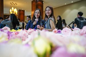 (250906) -- KUNMING, 6 septiembre, 2025 (Xinhua) -- Invitadas posan para una fotografía previo a la ceremonia de apertura del...