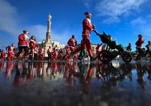 (251222) -- MADRID, 22 diciembre, 2025 (Xinhua) -- Imagen del 21 de diciembre de 2025 de corredores disfrazados como Santa...