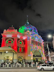 (251225) -- MELBOURNE, 25 diciembre, 2025 (Xinhua) -- Imagen tomada con un teléfono móvil de la Estación de Tren de...