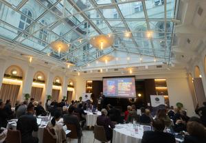 (251125) -- BUDAPEST, 25 noviembre, 2025 (Xinhua) -- Imagen del 24 de noviembre de 2025 de personas asistiendo al evento...