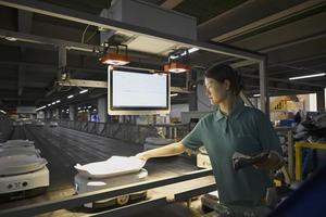 (250822) -- HEFEI, 22 agosto, 2025 (Xinhua) -- Imagen del 19 de agosto de 2025 de una trabajadora colocando un...