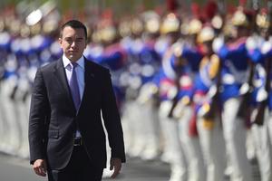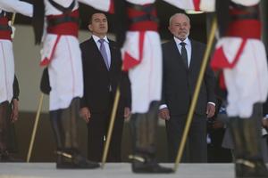 (250818) -- BRASILIA, 18 agosto, 2025 (Xinhua) -- El presidente ecuatoriano, Daniel Noboa, pasa revista a la guardia de honor...