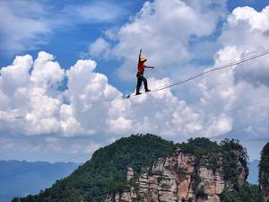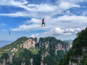 (250818) -- ZHANGJIAJIE, 18 agosto, 2025 (Xinhua) -- Imagen tomada con un dron el 18 de agosto de 2025 de...