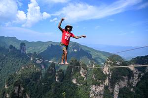 (250818) -- ZHANGJIAJIE, 18 agosto, 2025 (Xinhua) -- Imagen del 18 de agosto de 2025 de Coutinho, de Brasil, compitiendo...