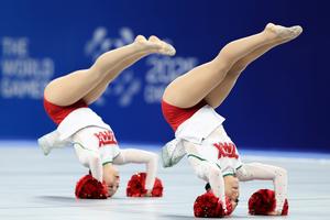 (250816) -- CHENGDU, 16 agosto, 2025 (Xinhua) -- Montse González/María Reyes, de México, realizan una presentación durante la ronda 2...