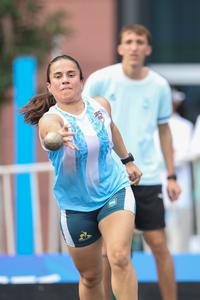 (250816) -- CHENGDU, 16 agosto, 2025 (Xinhua) -- Milagros Pereyra, de Argentina, compite durante la ronda de clasificación de tiro...