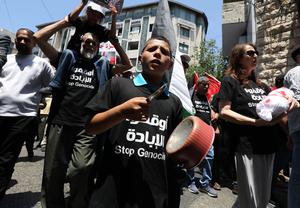 (250804) -- RAMALLAH, 4 agosto, 2025 (Xinhua) -- Imagen del 3 de agosto de 2025 de palestinos participando en una...