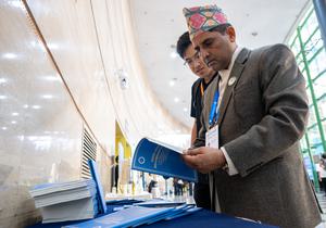 (250725) -- ZHENGZHOU, 25 julio, 2025 (Xinhua) -- Un delegado lee un informe del grupo de expertos titulado "En custodia...