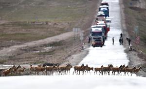 (250725) -- XINING, 25 julio, 2025 (Xinhua) -- Imagen del 28 de julio de 2023 de una manada de antílopes...