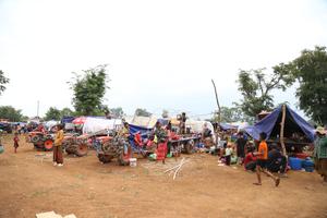 (250726) -- ODDAR MEANCHEY, 26 julio, 2025 (Xinhua) -- Evacuados camboyanos del conflicto fronterizo entre Camboya y Tailandia se reúnen...