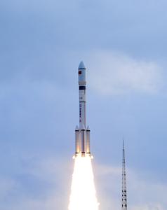 (250727) -- TAIYUAN, 27 julio, 2025 (Xinhua) -- Un cohete portador Gran Marcha-6 modificado transportando un grupo de satélites de...