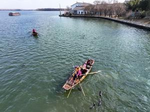 (260131) -- TAIZHOU, 31 enero, 2026 (Xinhua) -- Imagen tomada con un dron de pescadores capturando peces durante un evento...