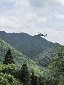 (250522) -- DAFANG, 22 mayo, 2025 (Xinhua) -- Imagen tomada con un teléfono celular de un helicóptero llevando a cabo...