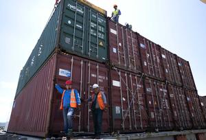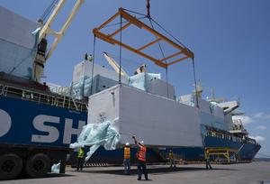 (250522) -- SAN LORENZO, 22 mayo, 2025 (Xinhua) -- Imagen del 20 de mayo de 2025 de trabajadores portuarios preparándose...