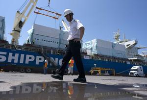 (250522) -- SAN LORENZO, 22 mayo, 2025 (Xinhua) -- Imagen del 20 de mayo de 2025 de un trabajador portuario...