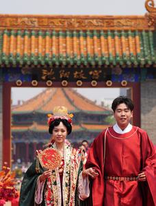 (250522) -- SHENYANG, 22 mayo, 2025 (Xinhua) -- Una pareja recién casada es vista durante una boda grupal en la...