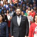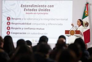 (260105) -- CIUDAD DE MEXICO, 5 enero, 2026 (Xinhua) -- La presidenta mexicana, Claudia Sheinbaum (d-atrás), habla durante su conferencia...