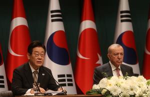 (251124) -- ANKARA, 24 noviembre, 2025 (Xinhua) -- El presidente turco, Recep Tayyip Erdogan (d), y el visitante presidente surcoreano,...