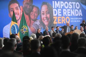 (251126) -- BRASILIA, 26 noviembre, 2025 (Xinhua) -- El presidente brasileño, Luiz Inácio Lula da Silva (frente), habla durante una...
