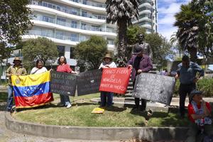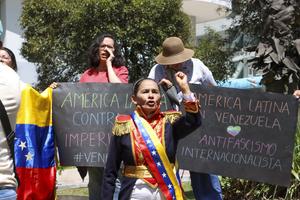 (260103) -- QUITO, 3 enero, 2026 (Xinhua) -- Personas participan en una manifestación en la plazoleta Abraham Lincoln, en la...
